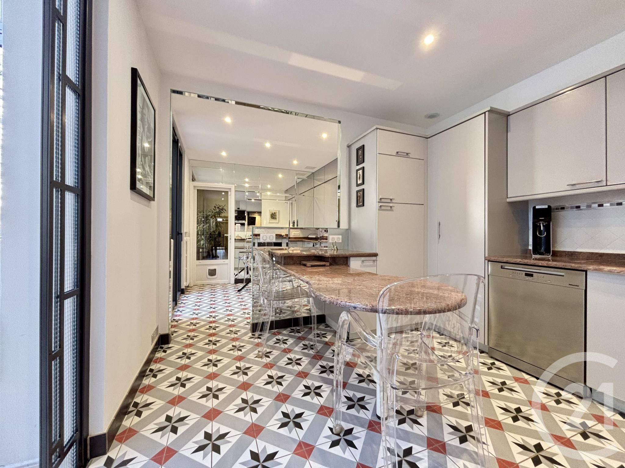 Elle séduit dès l'entrée par ses beaux volumes, sa hauteur sous plafond et ses finitions soignées.